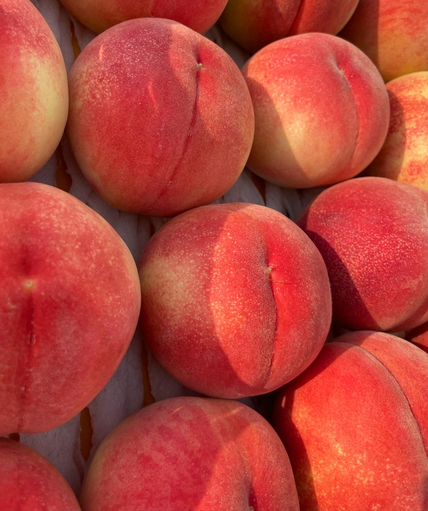 このように桃に白いつぶつぶ(果点)があれば美味しい桃のサイン。実は熟してきて糖度が上がってくると皮に亀裂が入りそれによって出来るのでこのような点になります。